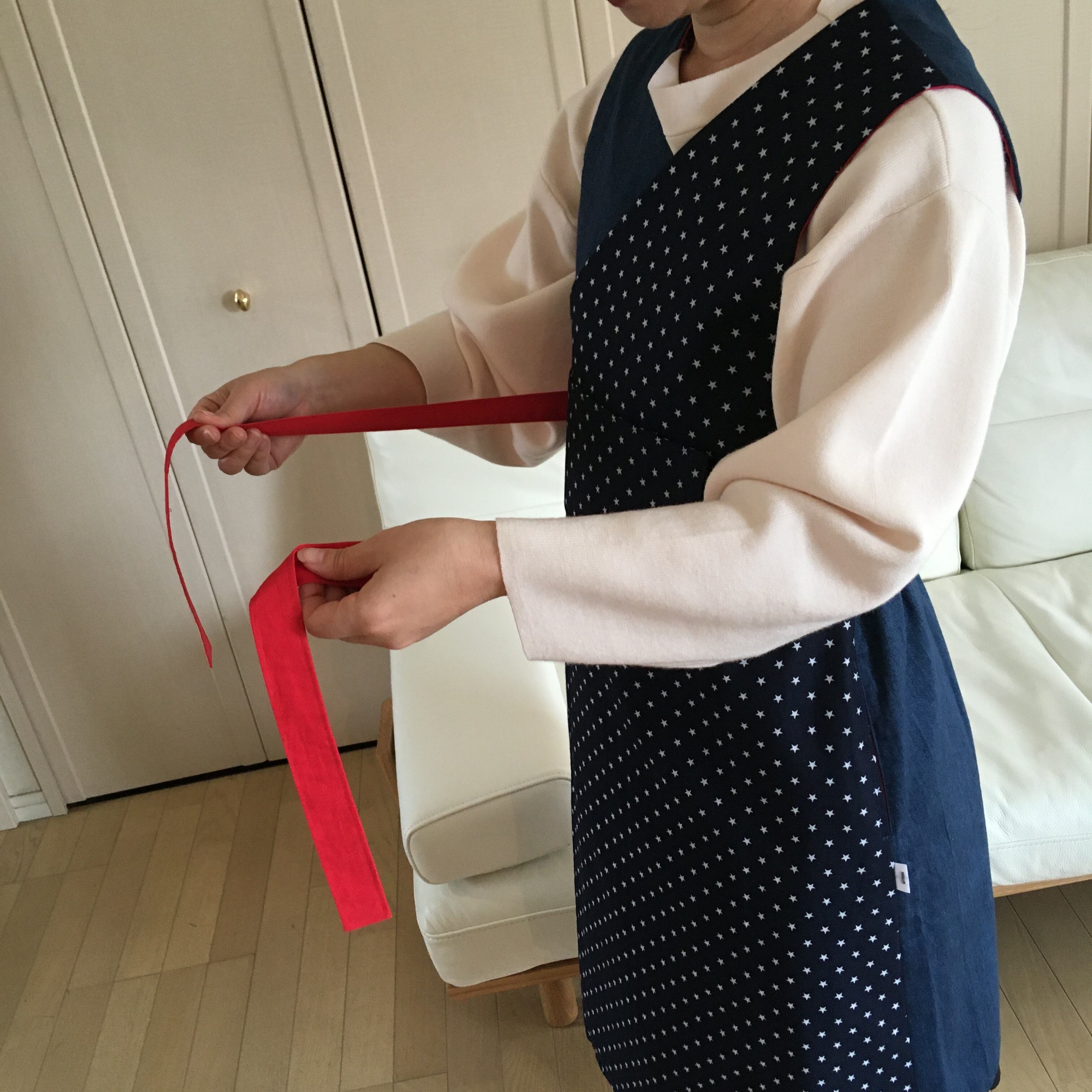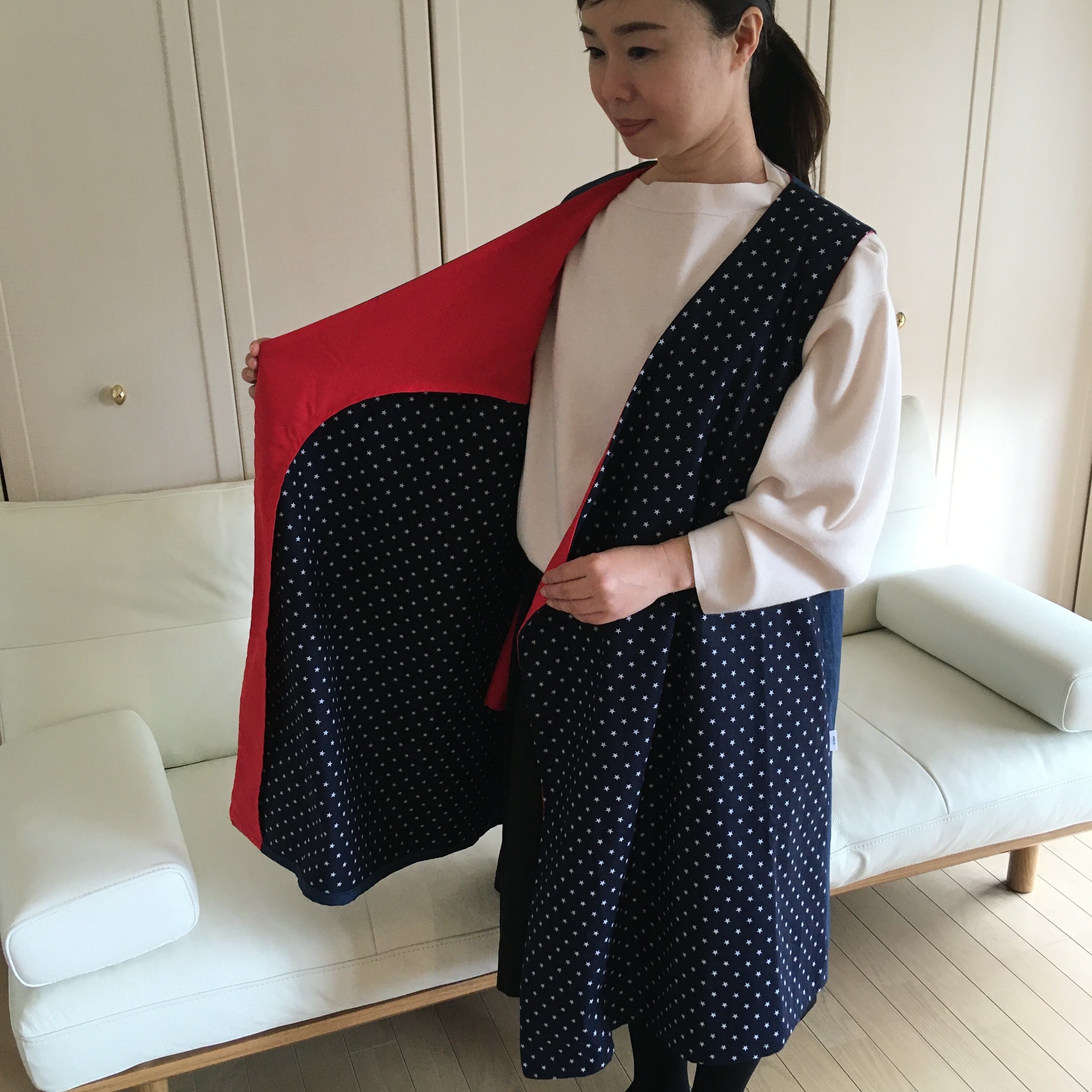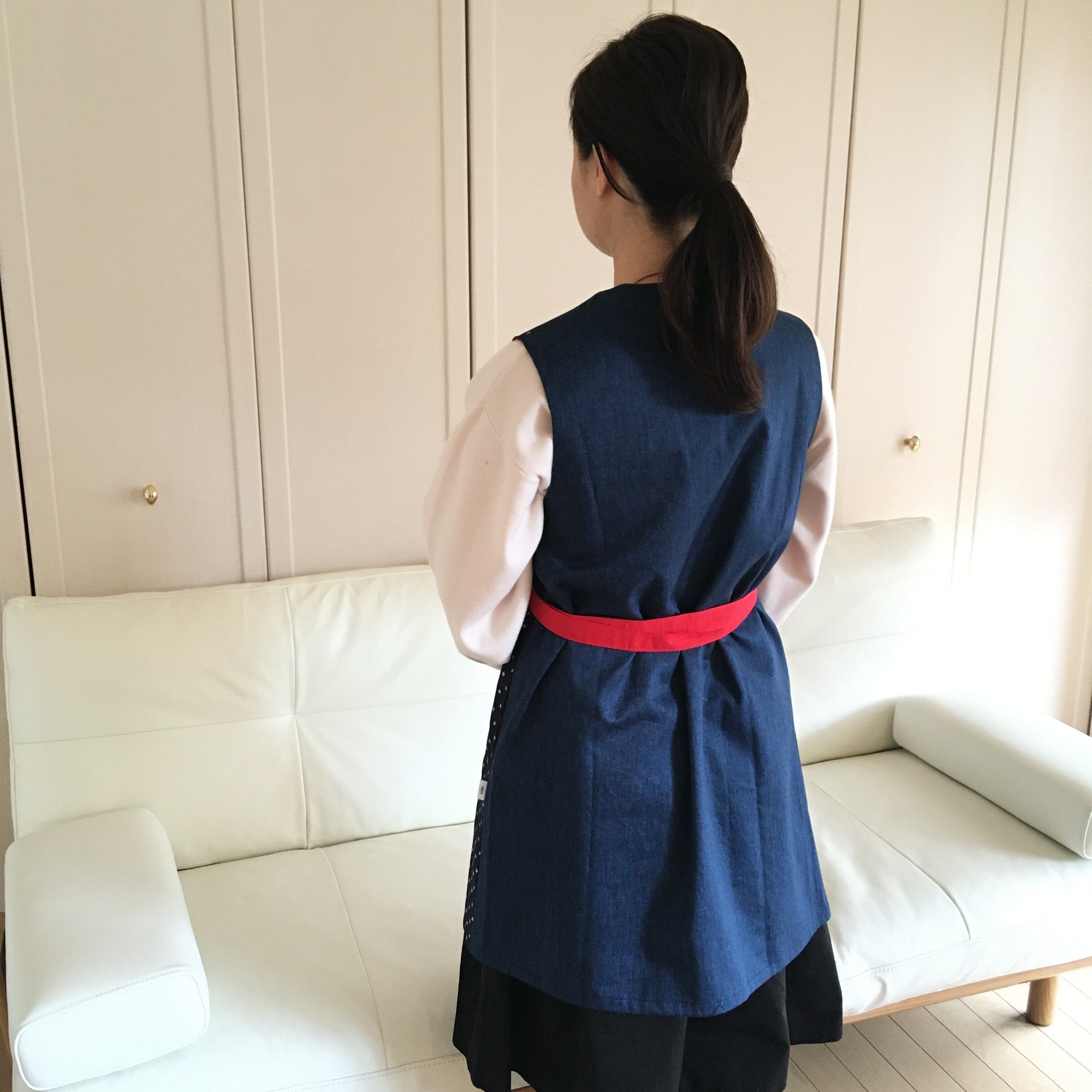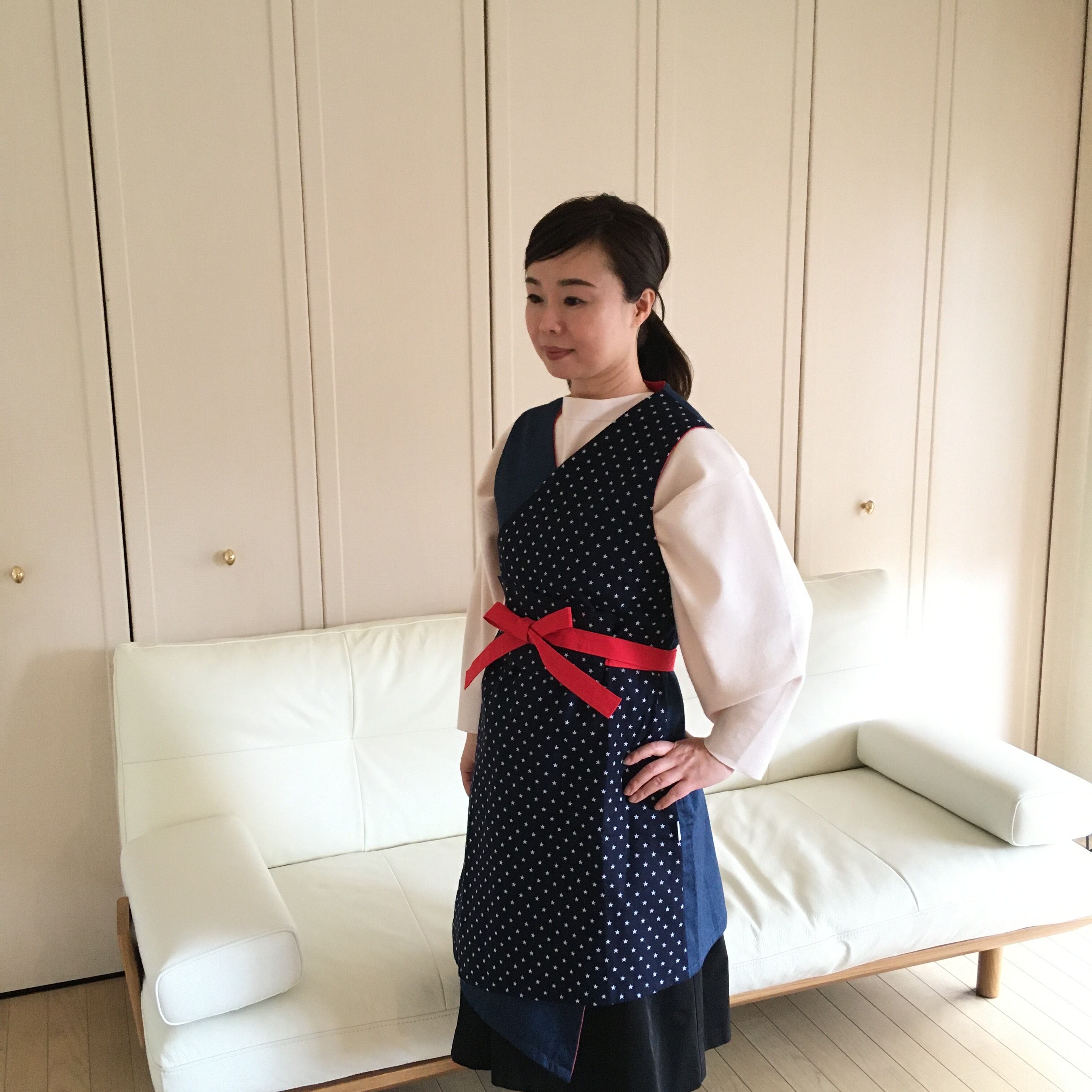 特徴は身ごろの打ち合わせを幅広く取っている為ゆとりを持って着装出来ます。