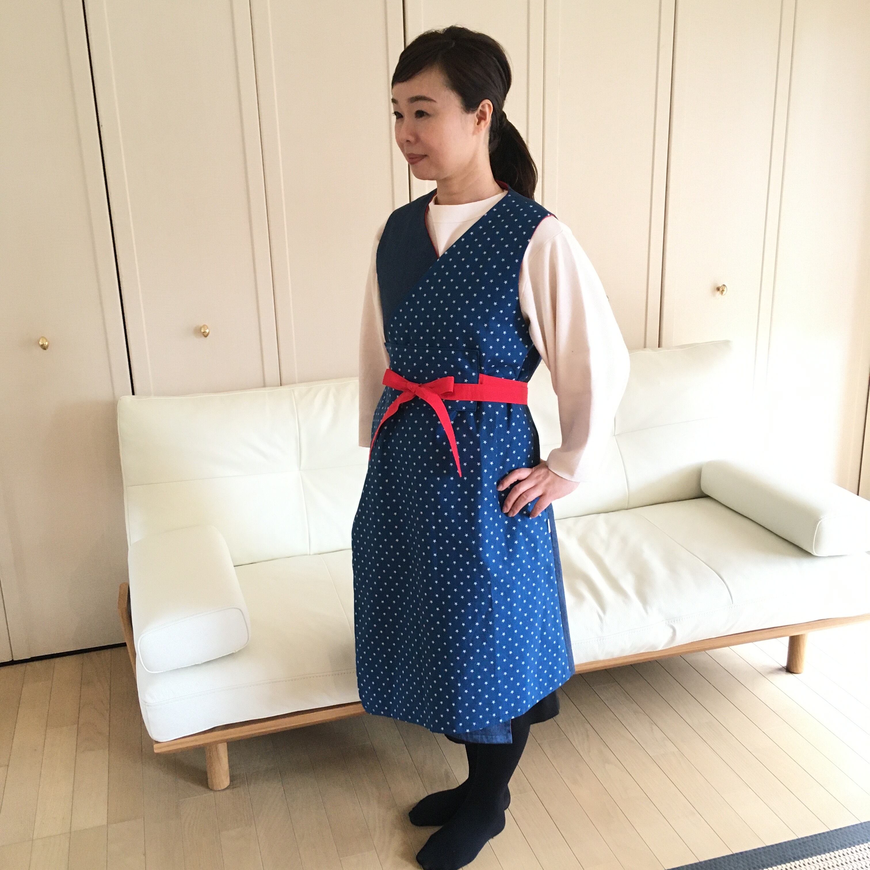 特徴は身ごろの打ち合わせを幅広く取っている為ゆとりを持って着装出来ます。