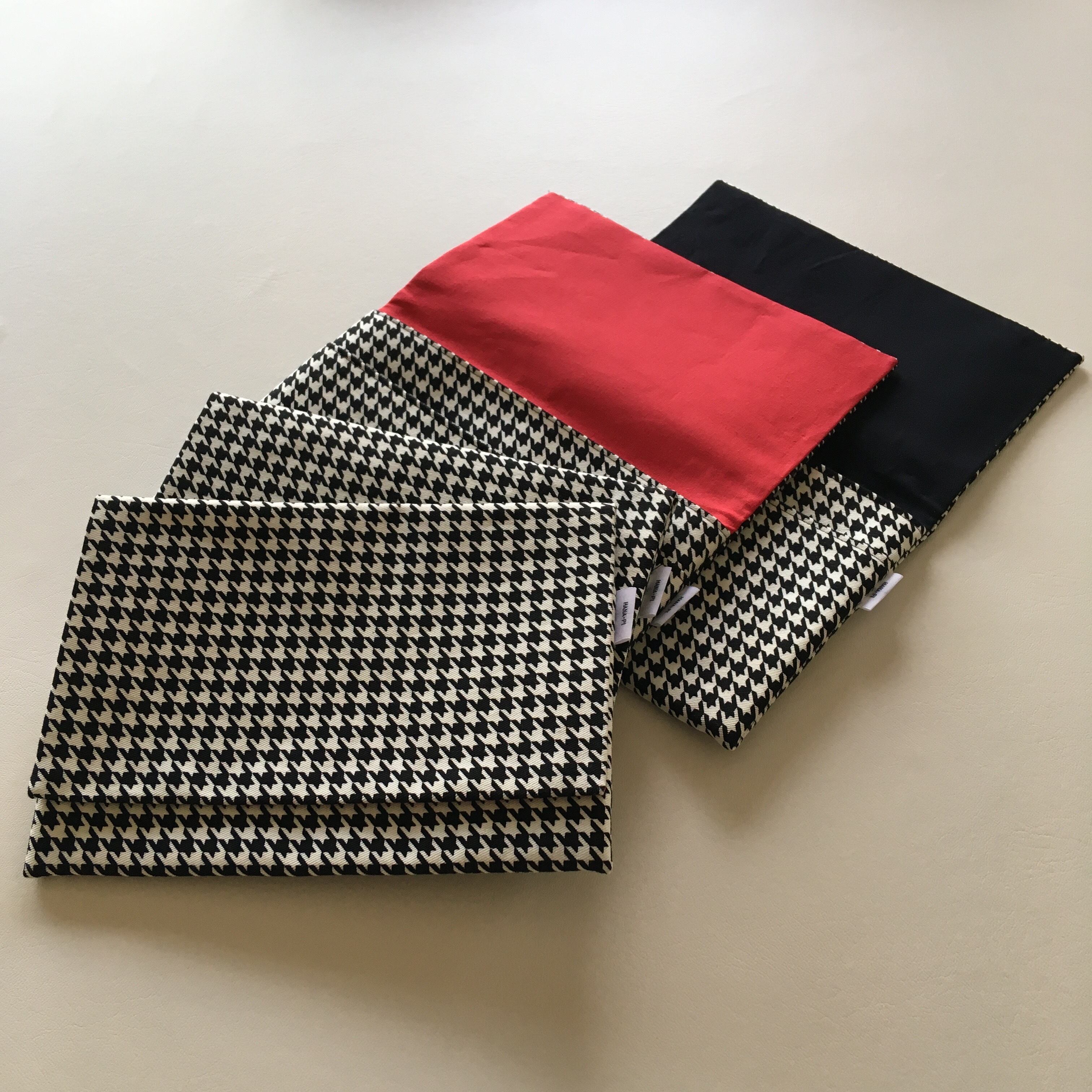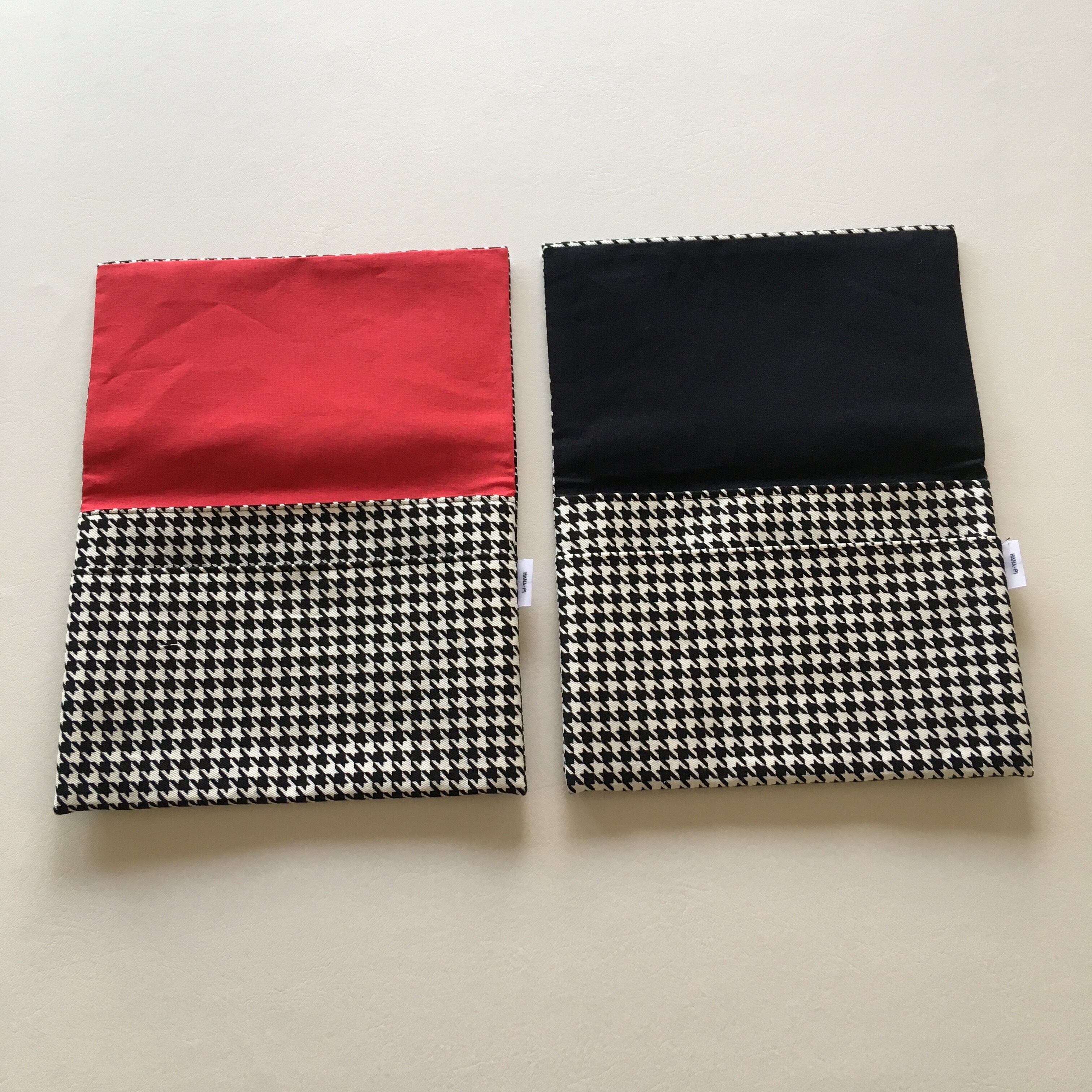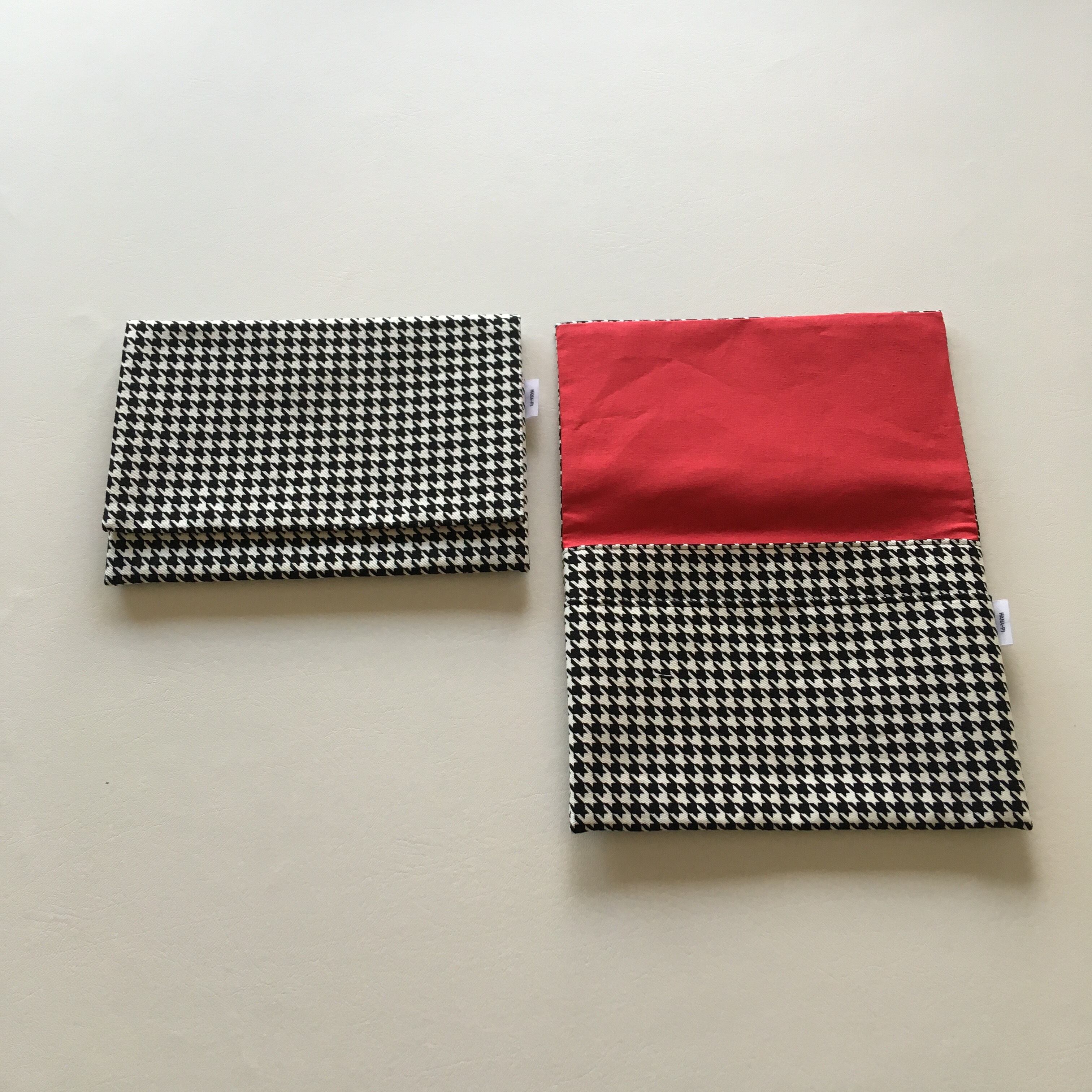 懐紙バサミ朱印帳入れ 男性様懐紙やマスクそして朱印帳も入れられる多目的ケース。 ipadミニもジャストフィットです。 チドリゴウシに裏地はレッド。 ★サイズ W25㎝ H15㎝ ★素材 綿